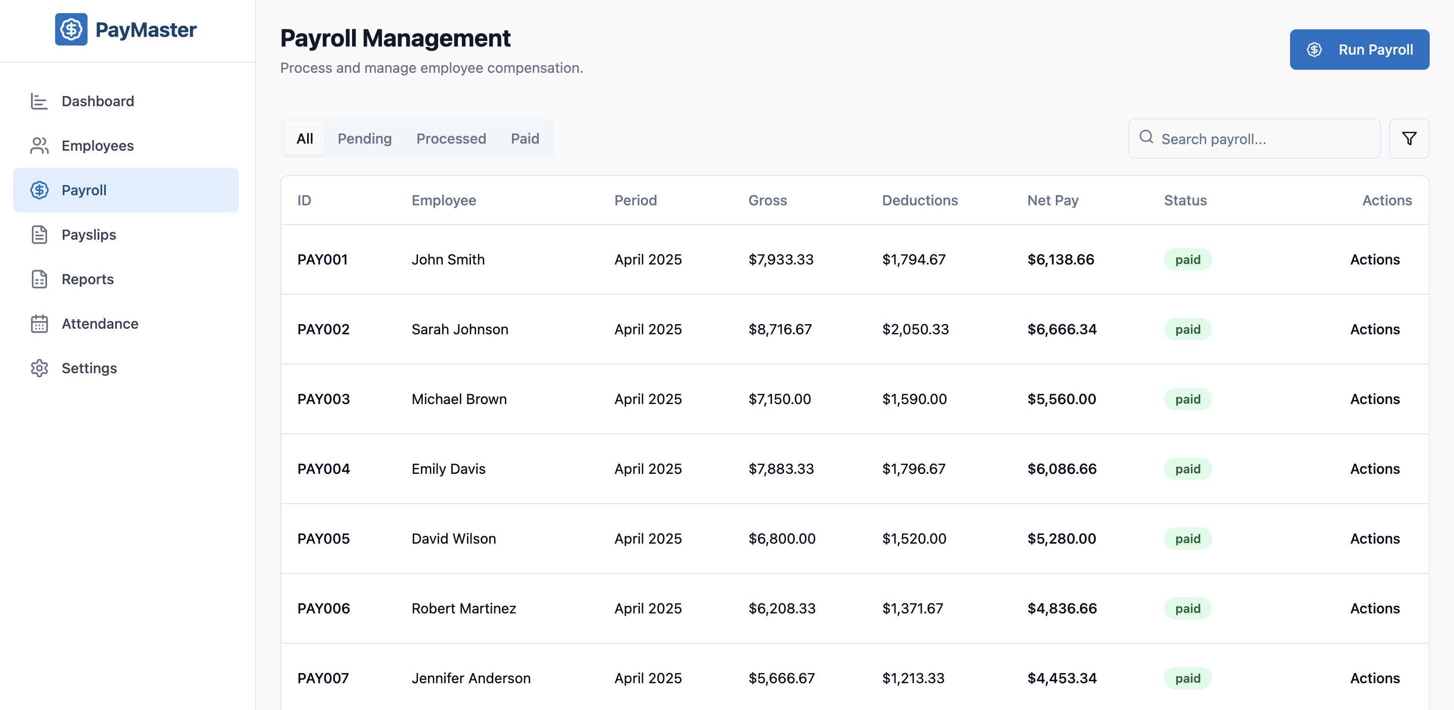 PayMaster - HR & Payroll Management System